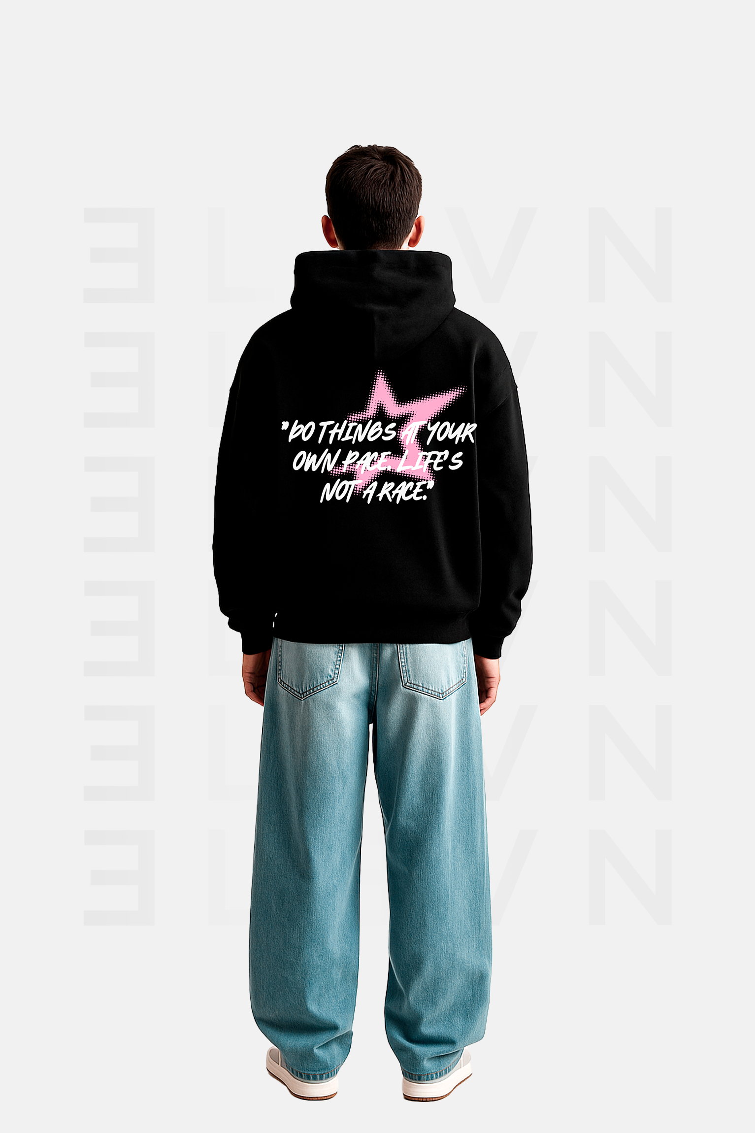 Actitud relajada, estilo que fluye. Esta hoodie representa la calma en el caos, para quienes se mueven a su ritmo sin ceder a la presión. Streetwear con identidad, mensaje y presencia.