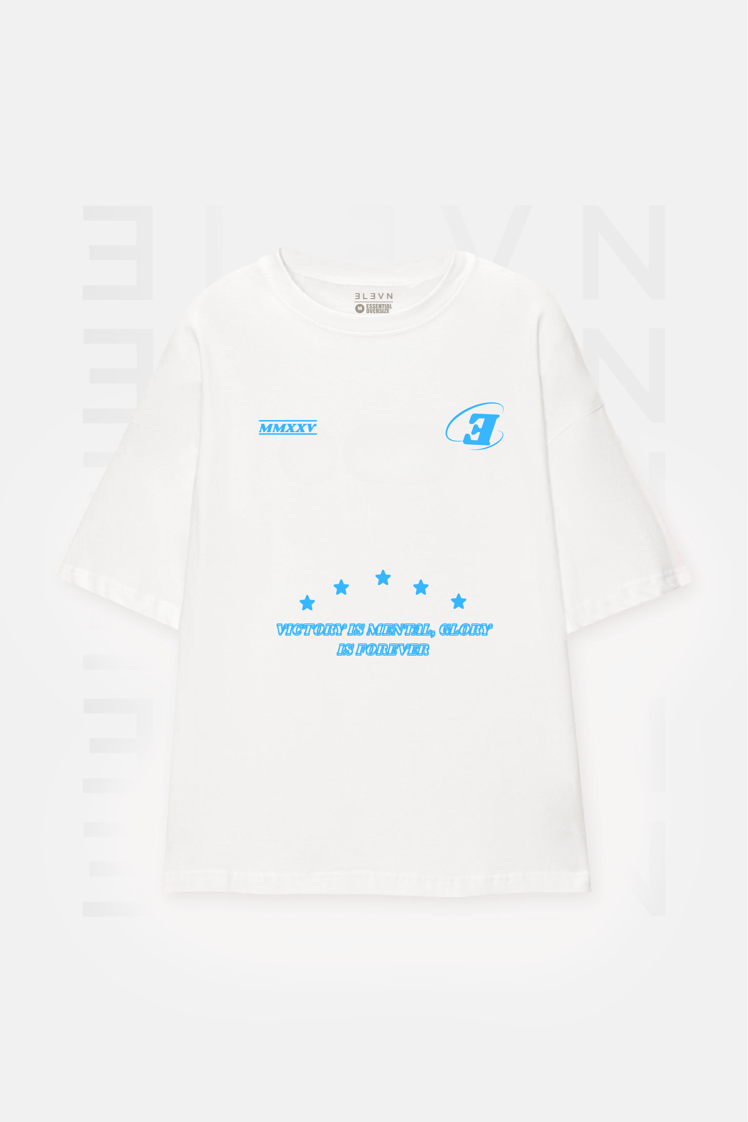 ➔ Estampado frontal con tipografía deportiva, gráficos minimalistas y mensaje central: Victory is mental, glory is forever