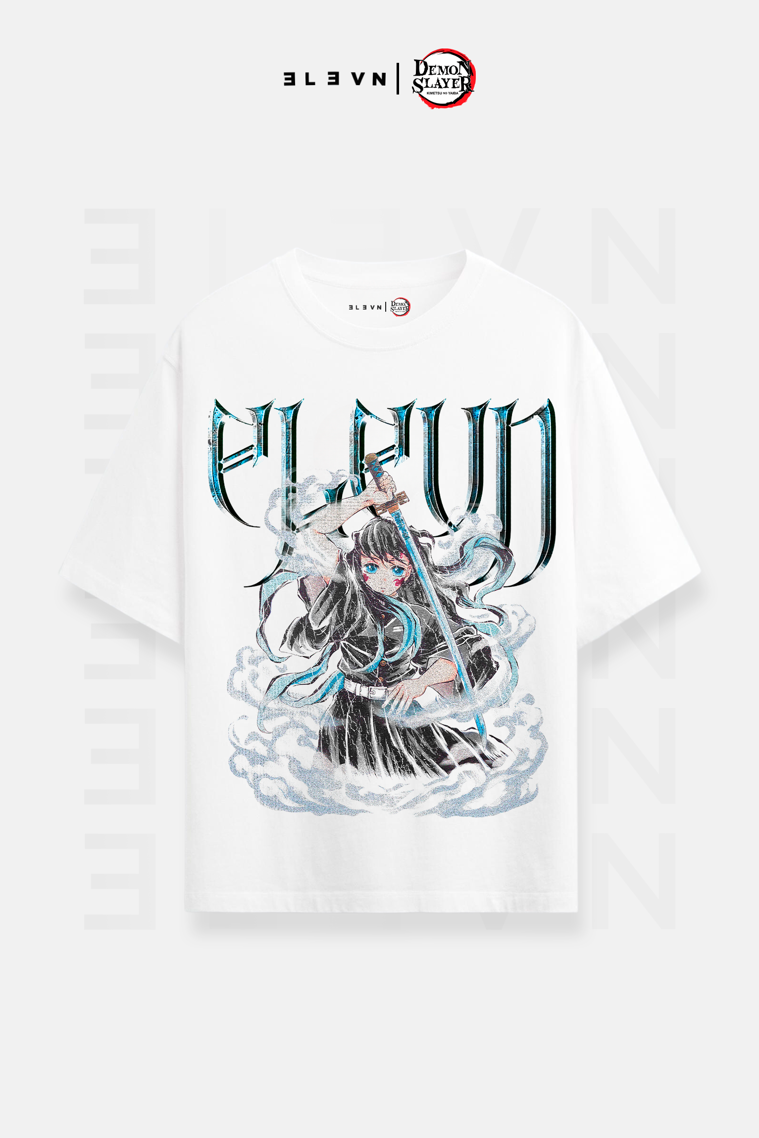 ➔ Estampado frontal con arte exclusivo de Akaza en trazos raw y tonos morado/azulados que transmiten su energía demoníaca